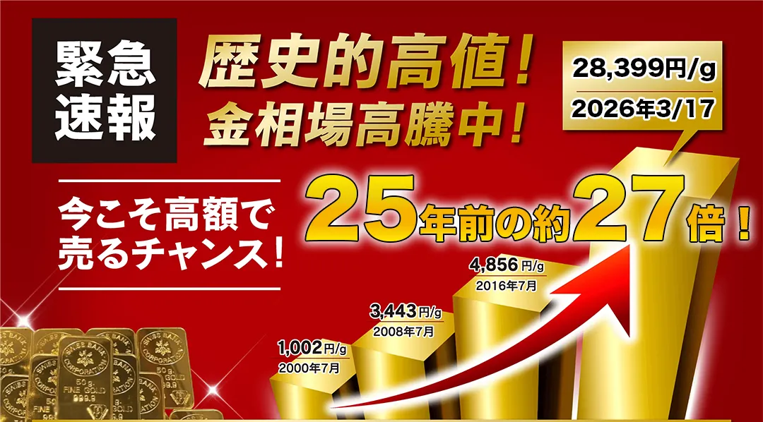価値が保証されている「今」こそ最高値での売却チャンスであり、あなたの金の価値を確認する絶好の機会です。