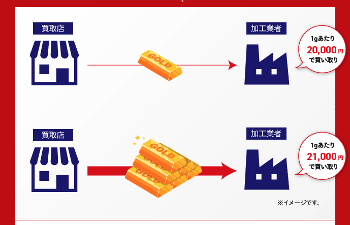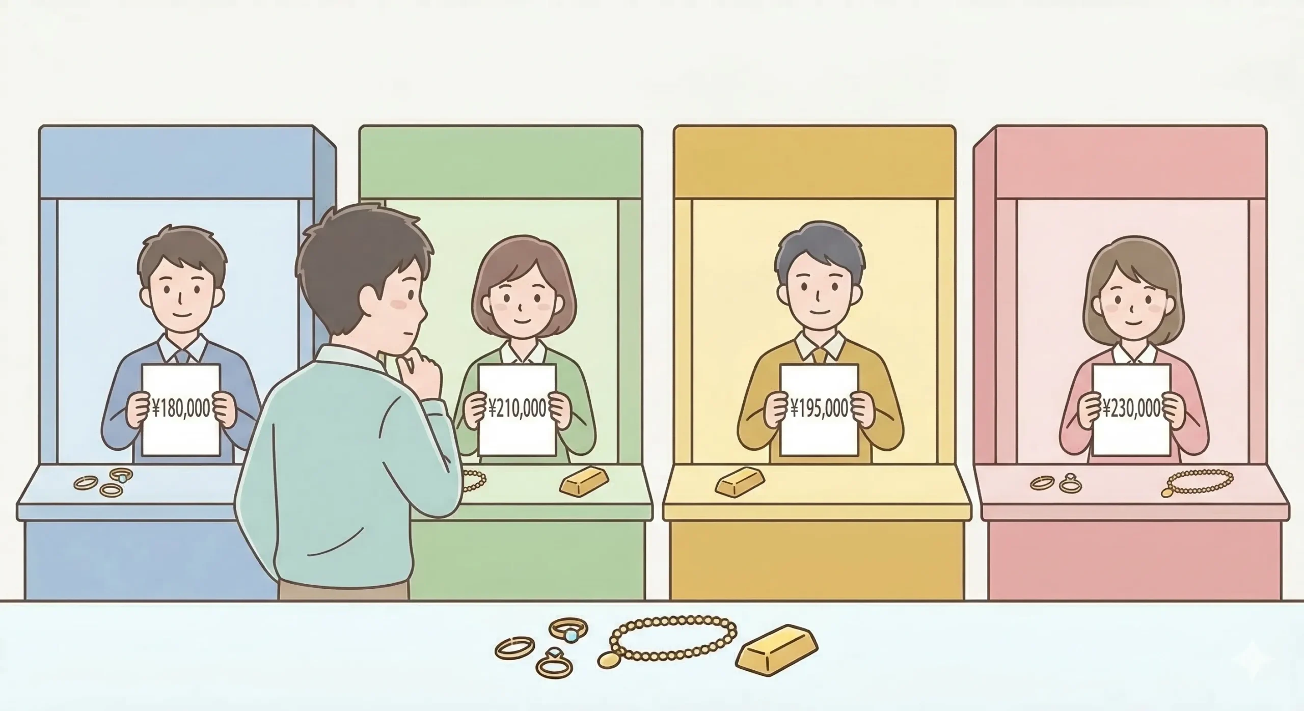 店舗によって、金の種類の評価や再販ルートが異なります。