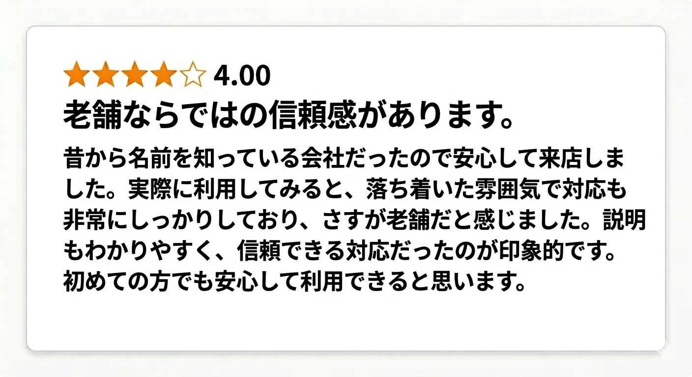 最低でも2社の見積もりを取ることで、自分の持っている金に対して最も高い評価を下す店を客観的に選べる可能性が上がります。